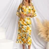 Casual Pullovers Ruffled Collar Half Sleeve Printed Chiffon Shirt